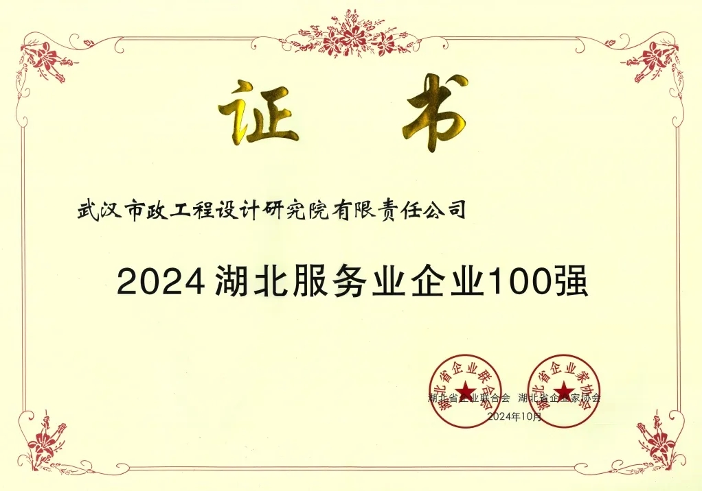 喜報(bào)|武漢市政院入圍2024年湖北服務(wù)業(yè)企業(yè)100強(qiáng)