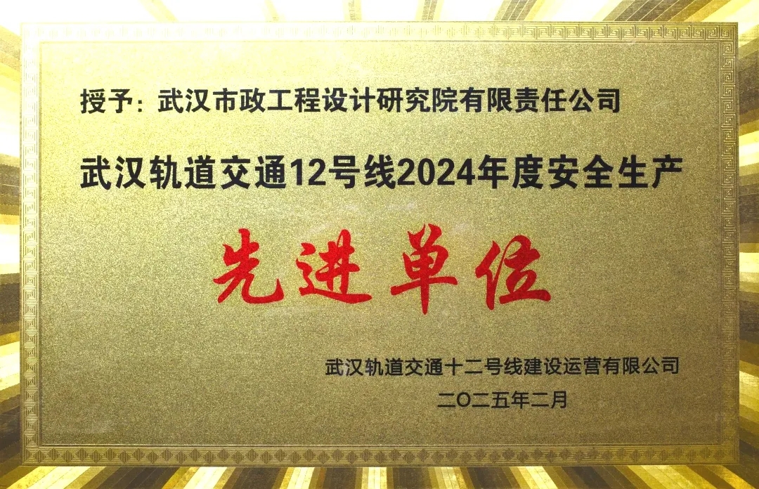 喜報(bào)|武漢市政院榮獲“武漢軌道交通12號(hào)線2024年度安全生產(chǎn)先進(jìn)單位”稱號(hào)