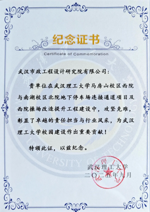 2025年9月6日上午,由武漢市政院設(shè)計的武漢理工大學馬房山校區(qū)西院與南湖校區(qū)北院地下停車場連接通道項目(以下簡稱“武漢理工大學地下通道”)通車儀式隆重舉行。洪山區(qū)區(qū)委區(qū)政府主要領(lǐng)導、武漢理工大學領(lǐng)導及各參建單位代表共同出席,見證這一重要時刻。儀式上,洪山區(qū)區(qū)委主要領(lǐng)導頒發(fā)“紀念證書”,表彰武漢市政院等參建單位在項目設(shè)計與實施過程中作出的重要貢獻。