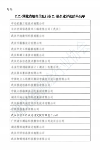喜報 | 武漢市政院榮膺“2025湖北省地理信息行業(yè)20強(qiáng)”
