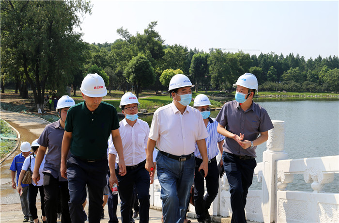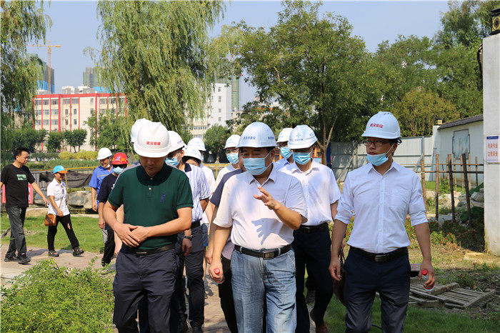 2020年8月5日上午,公司董事長武興治帶隊赴公司負責代建的紫陽湖“大湖+”工程建設現(xiàn)場檢查安全生產(chǎn)文明施工及防暑降溫工作落實情況。