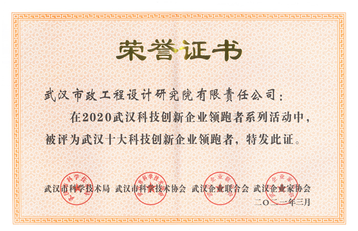 2021年4月15日,武漢創(chuàng)新與創(chuàng)業(yè)高峰論壇暨武漢科技創(chuàng)新企業(yè)領跑者系列活動頒獎盛典在武漢電視臺演播廳隆重舉行,武漢市政設計院榮膺“2020年度武漢十大科技創(chuàng)新企業(yè)領跑者”稱號,公司副總經(jīng)理周俊作為嘉賓上臺領獎。