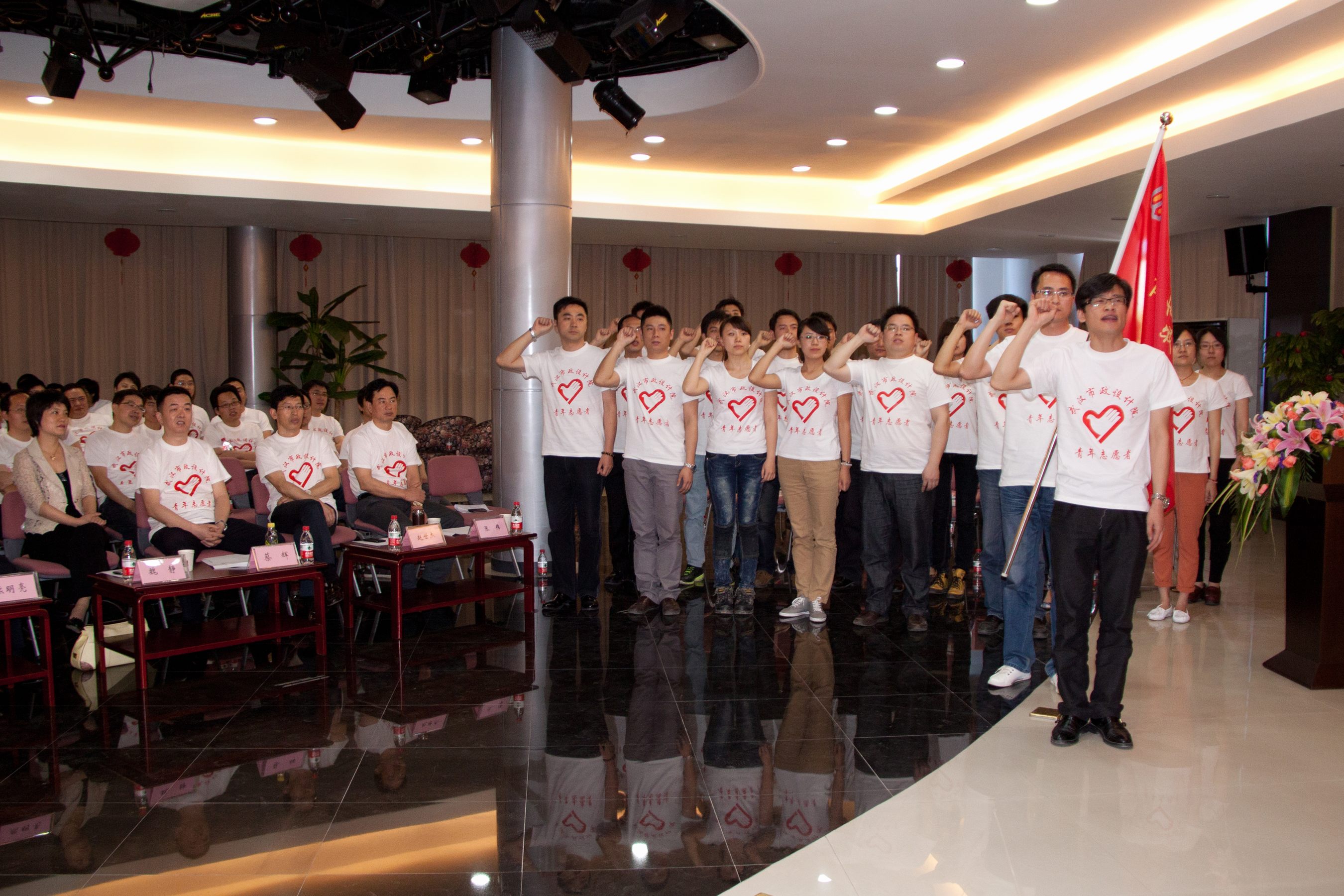 ??? 黨委書(shū)記蔡輝以“責(zé)任、奉獻(xiàn)、進(jìn)步”寄語(yǔ)廣大青年員工,希望大家永遠(yuǎn)牢記今天神圣的誓言,把愛(ài)心的種子、奉獻(xiàn)的精神播撒到祖國(guó)這片熱土上。