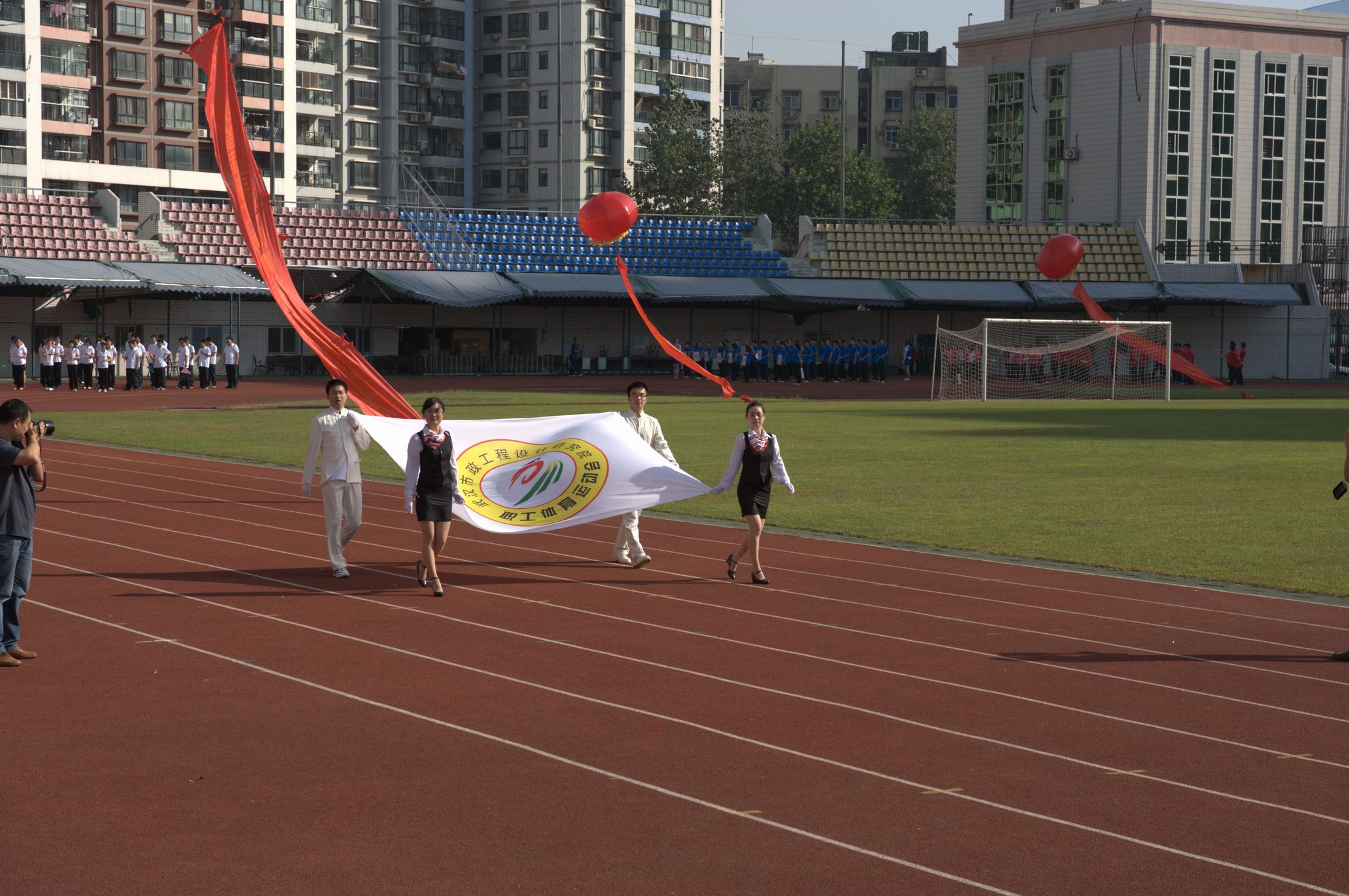 ??? 9月28日的漢口體育中心,彩旗飄揚(yáng),樂聲陣陣,在“我運(yùn)動(dòng),我健康,我快樂”的巨幅背景前,紅色的主席臺(tái)被妝點(diǎn)得分外喜慶,十只巨大的彩色氣球懸掛著運(yùn)動(dòng)會(huì)的宣傳標(biāo)語,烘托出熱烈的比賽氣氛。武漢市城建委黨組副書記、副主任熊明亮,武漢市城建委總工程師、首席市政工程專家龍世平,武漢市城建委工會(huì)主任朱宗信應(yīng)邀出席了開幕式,公司領(lǐng)導(dǎo)和各部門負(fù)責(zé)人在主席臺(tái)就坐。