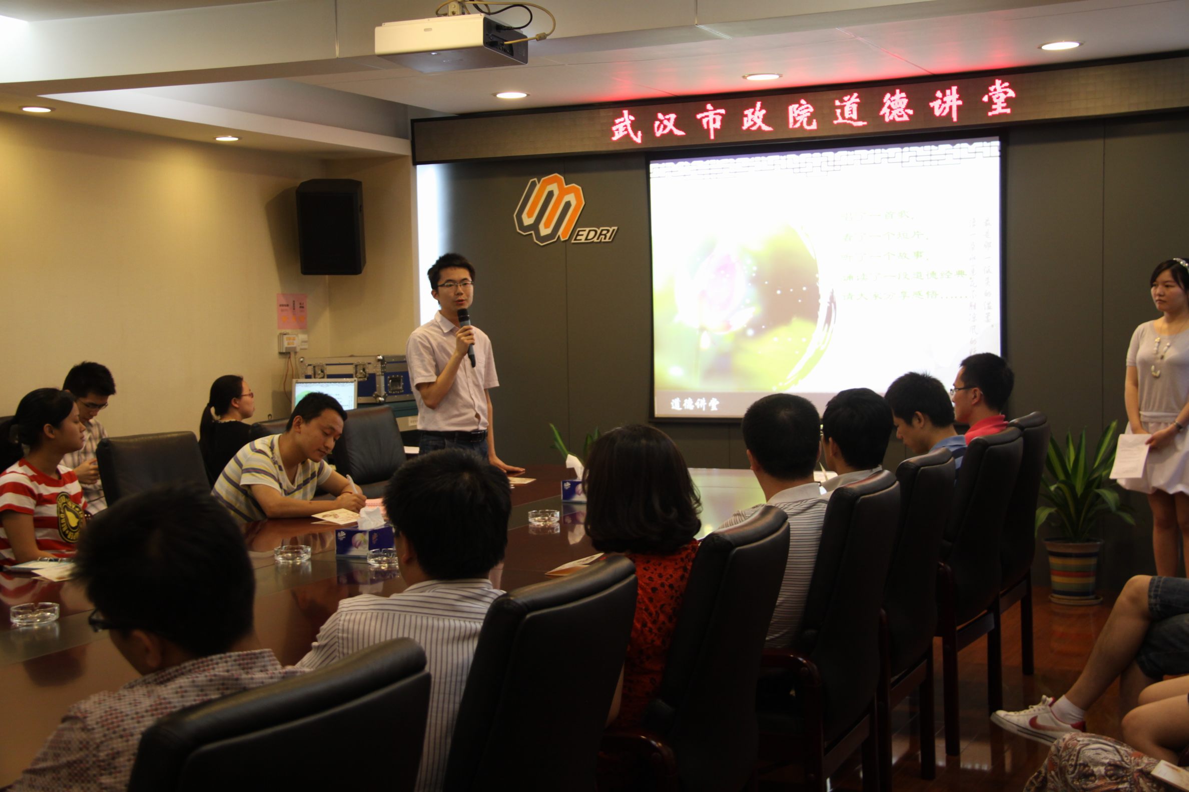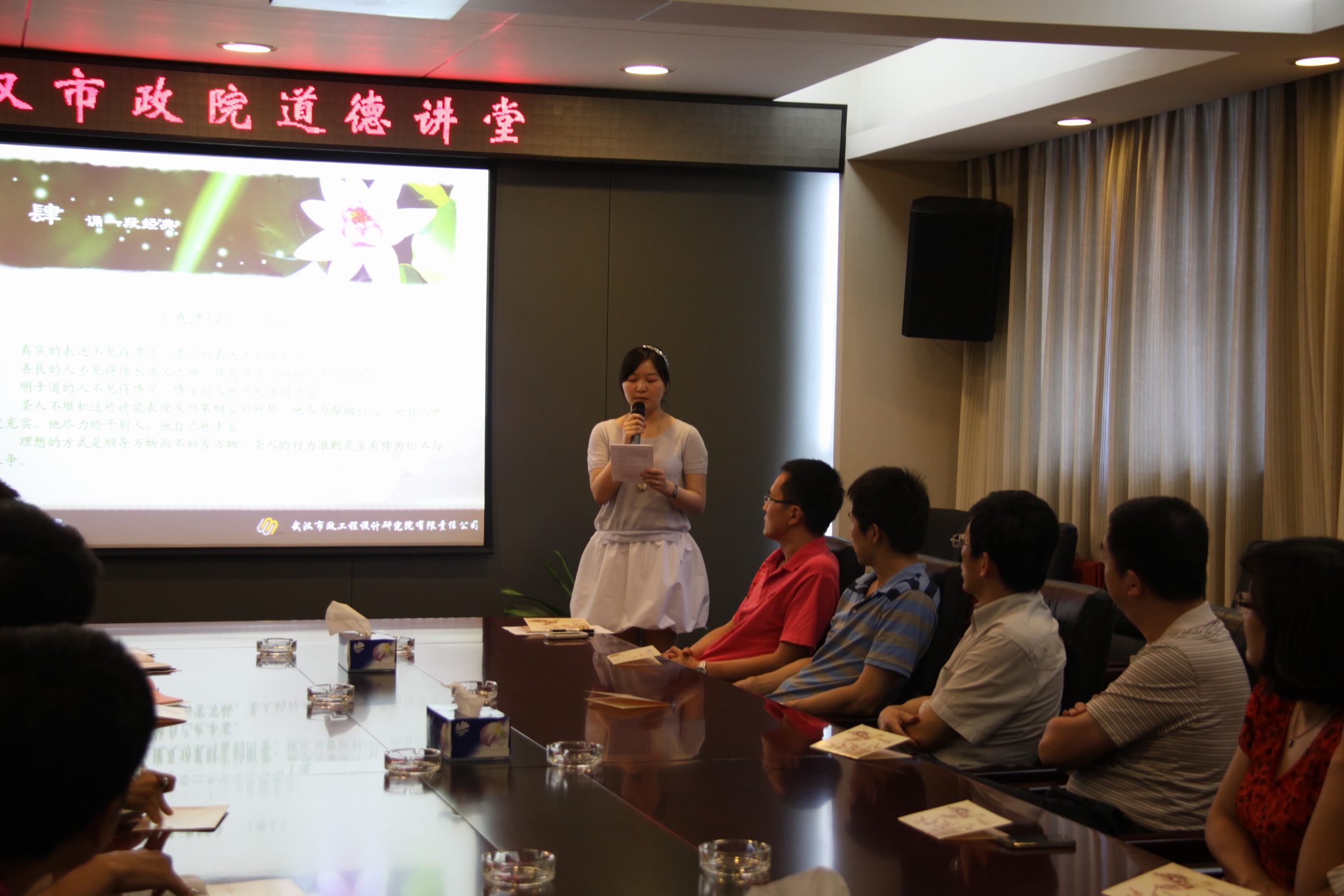 ??? 6月14日下午,公司在三樓會議室舉行了“道德講堂”教育活動,共有包括青年員工代表、業(yè)務(wù)骨干在內(nèi)的30余人參加了本次活動,公司相關(guān)領(lǐng)導(dǎo)出席了活動。