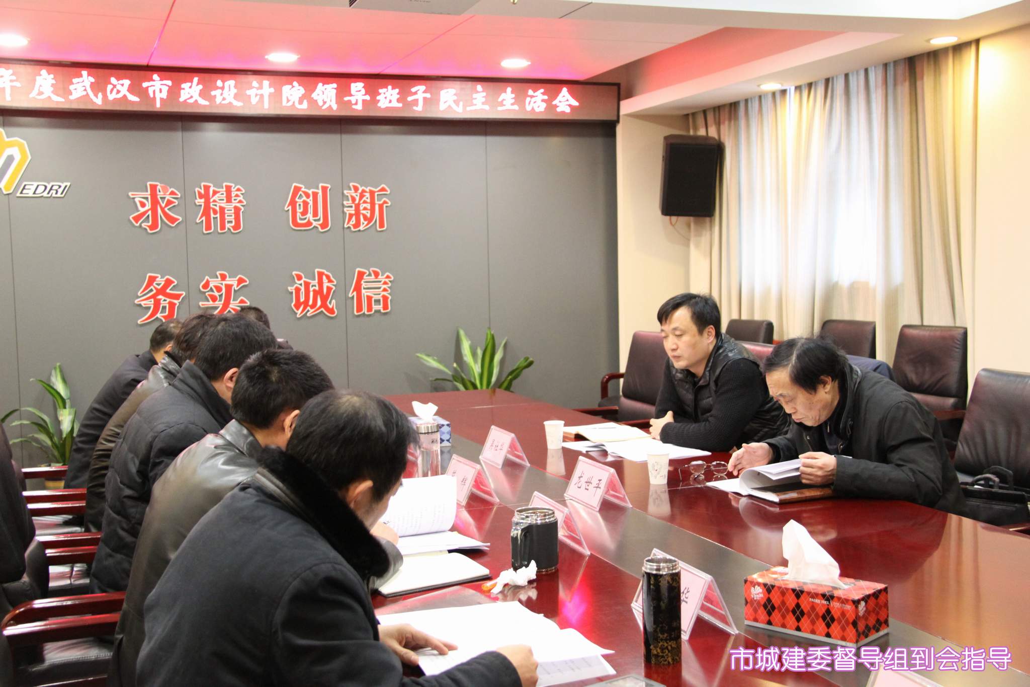 ??? 按照市城建委的安排和部署,2月5日下午,公司領(lǐng)導(dǎo)班子召開2014年度民主生活會,市城建委督導(dǎo)組組長、總工程師龍世平和督導(dǎo)組成員吳社華出席并指導(dǎo)了會議,黨委書記蔡輝主持會議,并代表公司黨委作對照檢查并作總結(jié)講話,公司領(lǐng)導(dǎo)班子成員逐一作對照檢查,開展批評與自我批評。