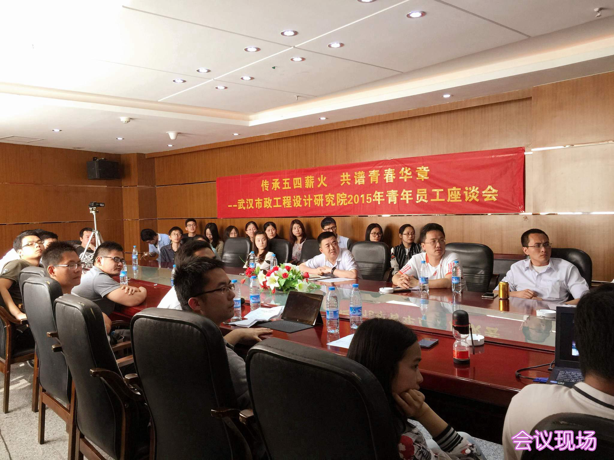 ??? 5月8日下午,一場(chǎng)以“傳承五四薪火,共譜青春華章”為主題的青年員工座談會(huì)如期舉行,公司黨委書記蔡輝、綜合辦公室副主任呂擁軍與公司青年員工圍坐在一起,傾聽青年員工的心聲,感受青年員工思想的碰撞。