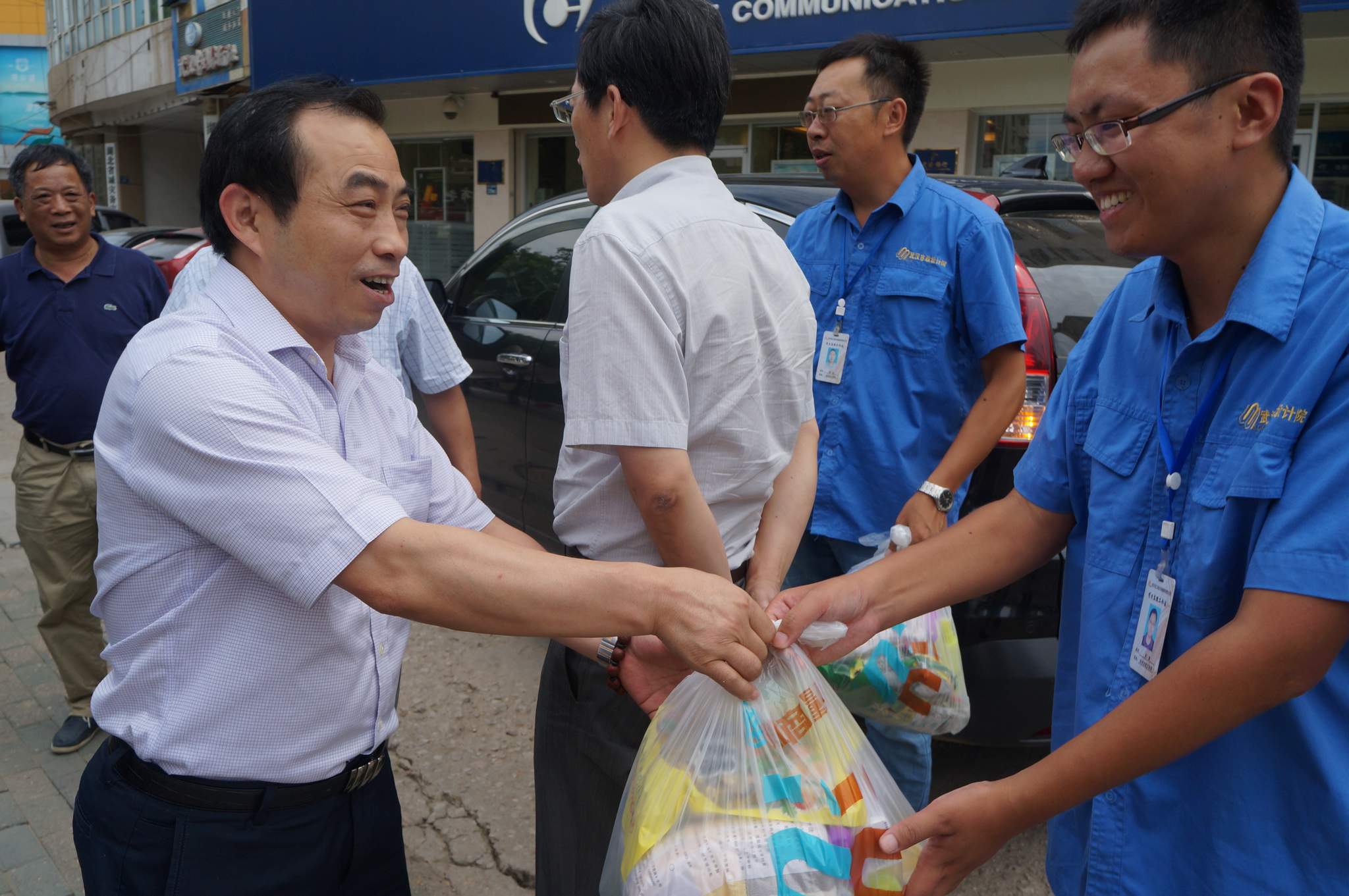 ??? 8月5日,公司總經(jīng)理姚華、副總經(jīng)理趙世杰帶領(lǐng)綜合辦公室、監(jiān)理公司、勘測(cè)設(shè)計(jì)院等部門負(fù)責(zé)人,對(duì)部分工地進(jìn)行了走訪慰問,為高溫下堅(jiān)持工作的一線員工送上一份清涼。
