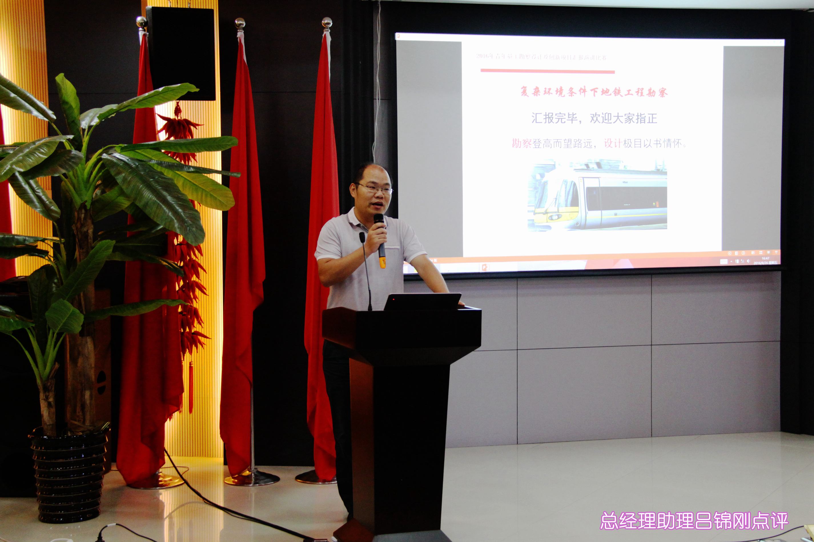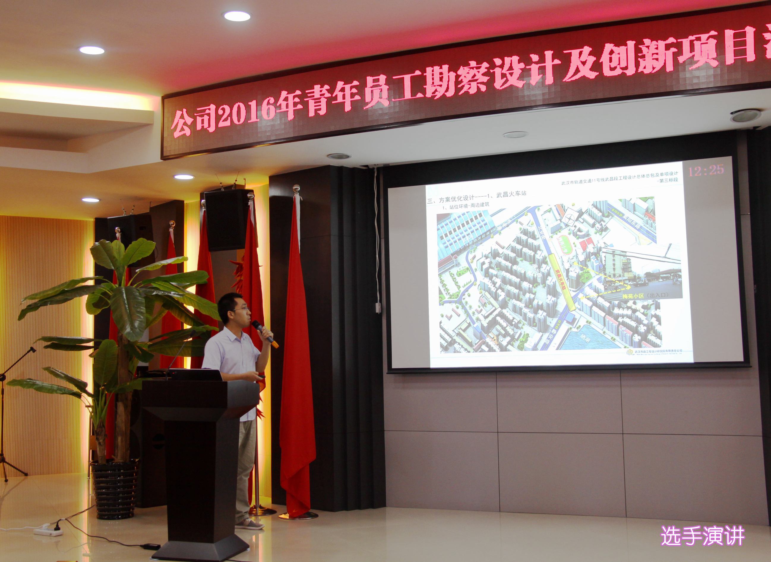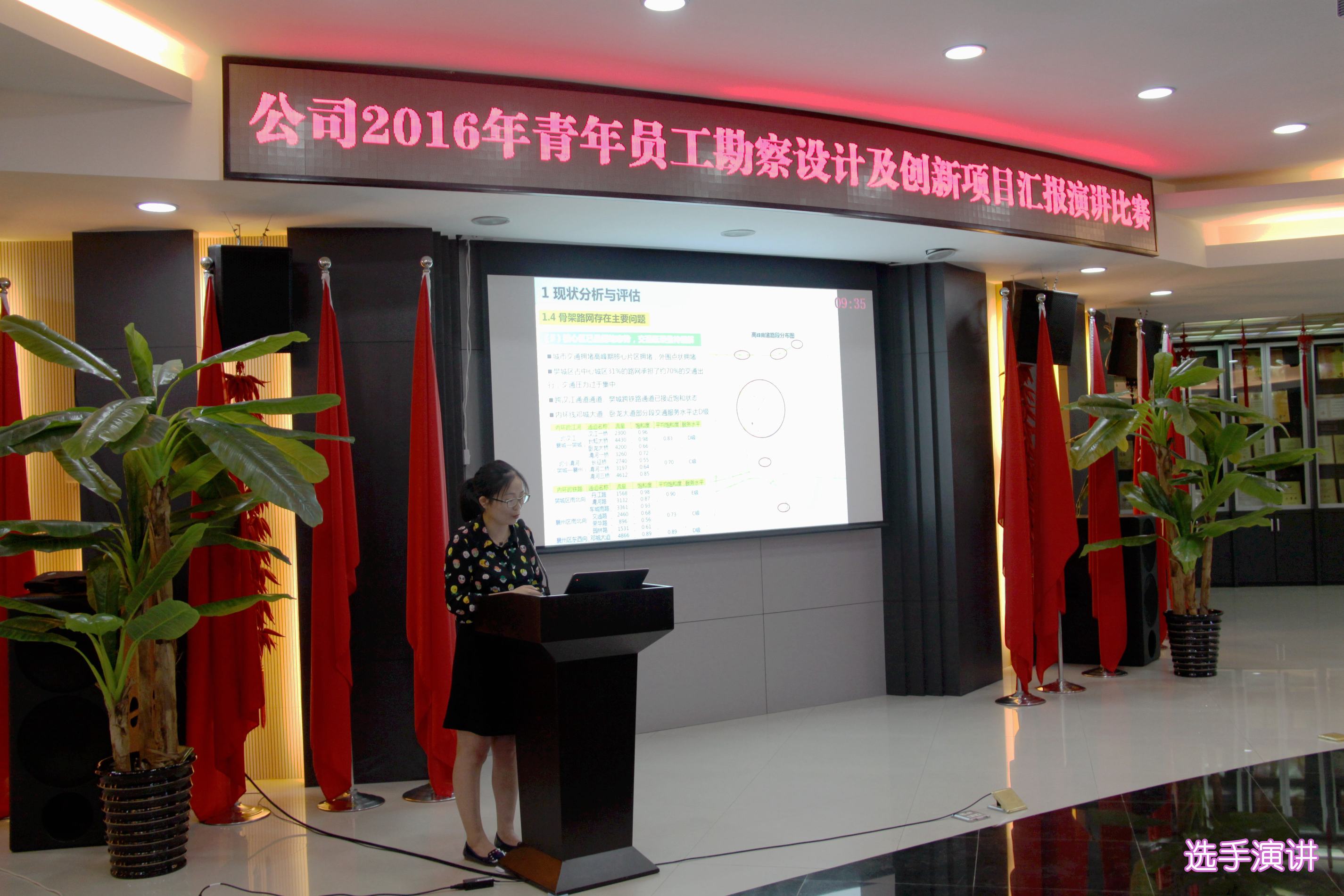 ??? 8月26日,一場以創(chuàng)新為主題的勘察設(shè)計(jì)及創(chuàng)新項(xiàng)目匯報演講比賽在公司二樓會議室舉行。參加本次演講比賽的11位青年員工從各部門、各專業(yè)的精心選拔中脫穎而出,具備了一定的技術(shù)能力和演講水平,是青年員工中的佼佼者。本次演講比賽吸引了近百名員工參加,由6名評委組成的評委會對演講人的綜合表現(xiàn)進(jìn)行評分,并以此為依據(jù)確定名次。公司相關(guān)領(lǐng)導(dǎo)出席了本次活動。