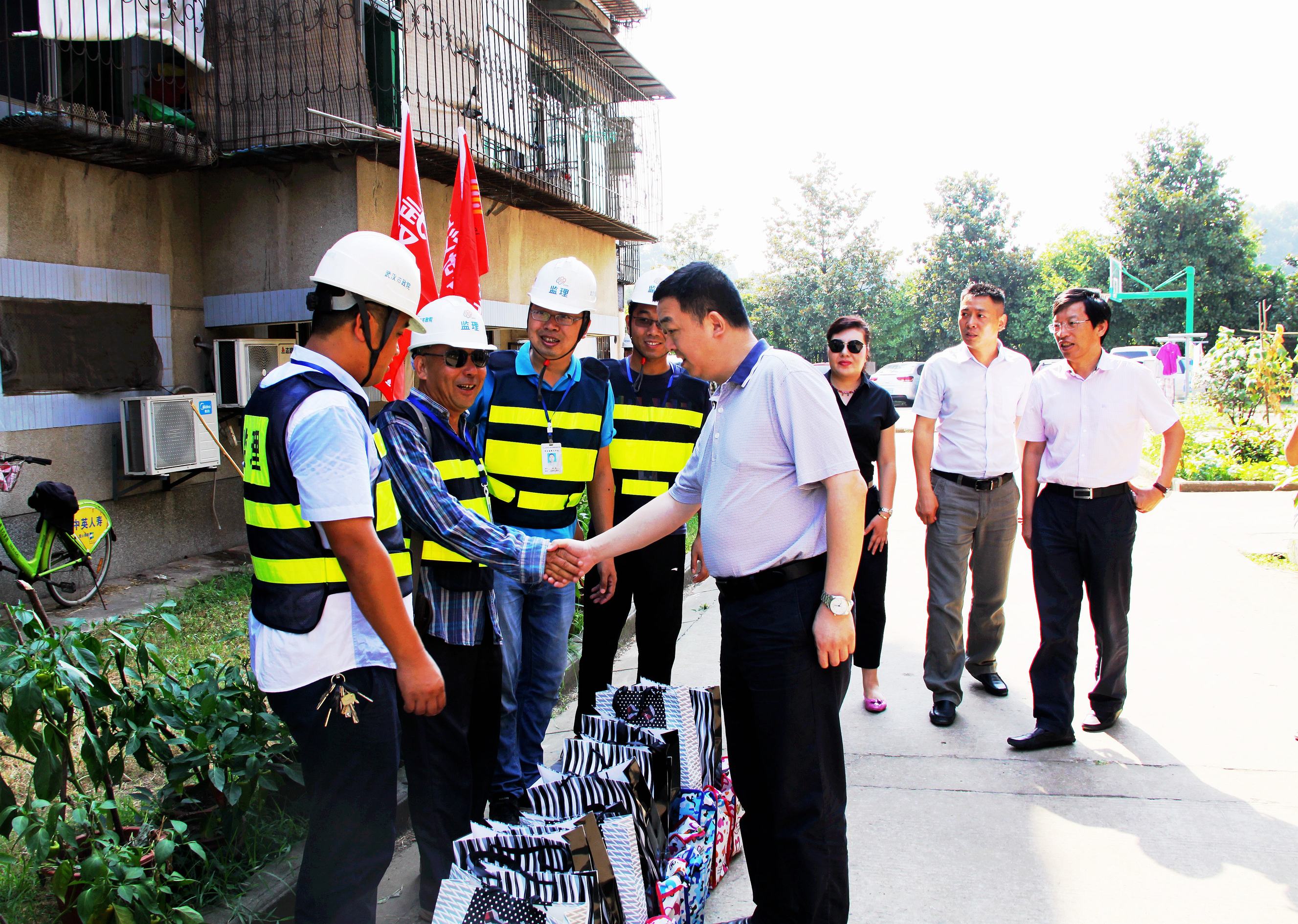 ??? 近日,武漢市遭遇了連續(xù)高溫酷暑天氣,氣溫逼近40度,而公司的勘察、監(jiān)理、檢測(cè)、代建等部門還在高溫中堅(jiān)持作業(yè),以確保建設(shè)項(xiàng)目按期竣工。7月26日,公司黨委書記蔡輝、紀(jì)委書記兼工會(huì)主席趙世杰,以及勘察、監(jiān)理、檢測(cè)、代建等部門負(fù)責(zé)人一行深入工程現(xiàn)場(chǎng),慰問高溫作業(yè)員工,為他們送上了清涼消暑用品。