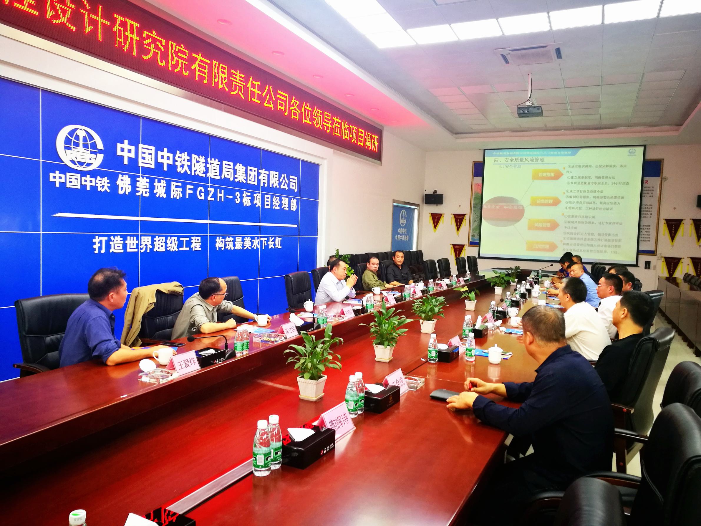 ??? 下午,雙方前往中鐵隧道集團(tuán)承建的佛莞城際鐵路獅子洋隧道進(jìn)行參觀。該項(xiàng)目位于廣州市番禺區(qū)和東莞市麻涌鎮(zhèn),隧道全長(zhǎng)6476.4米,其中盾構(gòu)隧道長(zhǎng)4900米,開挖直徑13.61米,是世界最大的水下鐵路盾構(gòu)隧道。項(xiàng)目負(fù)責(zé)人詳細(xì)介紹了項(xiàng)目特點(diǎn),重點(diǎn)介紹了盾構(gòu)施工工藝。參觀后,雙方在項(xiàng)目部進(jìn)行了座談,交流技術(shù)心得,認(rèn)為該項(xiàng)目在隧道盾構(gòu)施工方面處于世界領(lǐng)先地位,對(duì)于后續(xù)穿越江河湖海的盾構(gòu)隧道建設(shè)具有極強(qiáng)的借鑒意義。