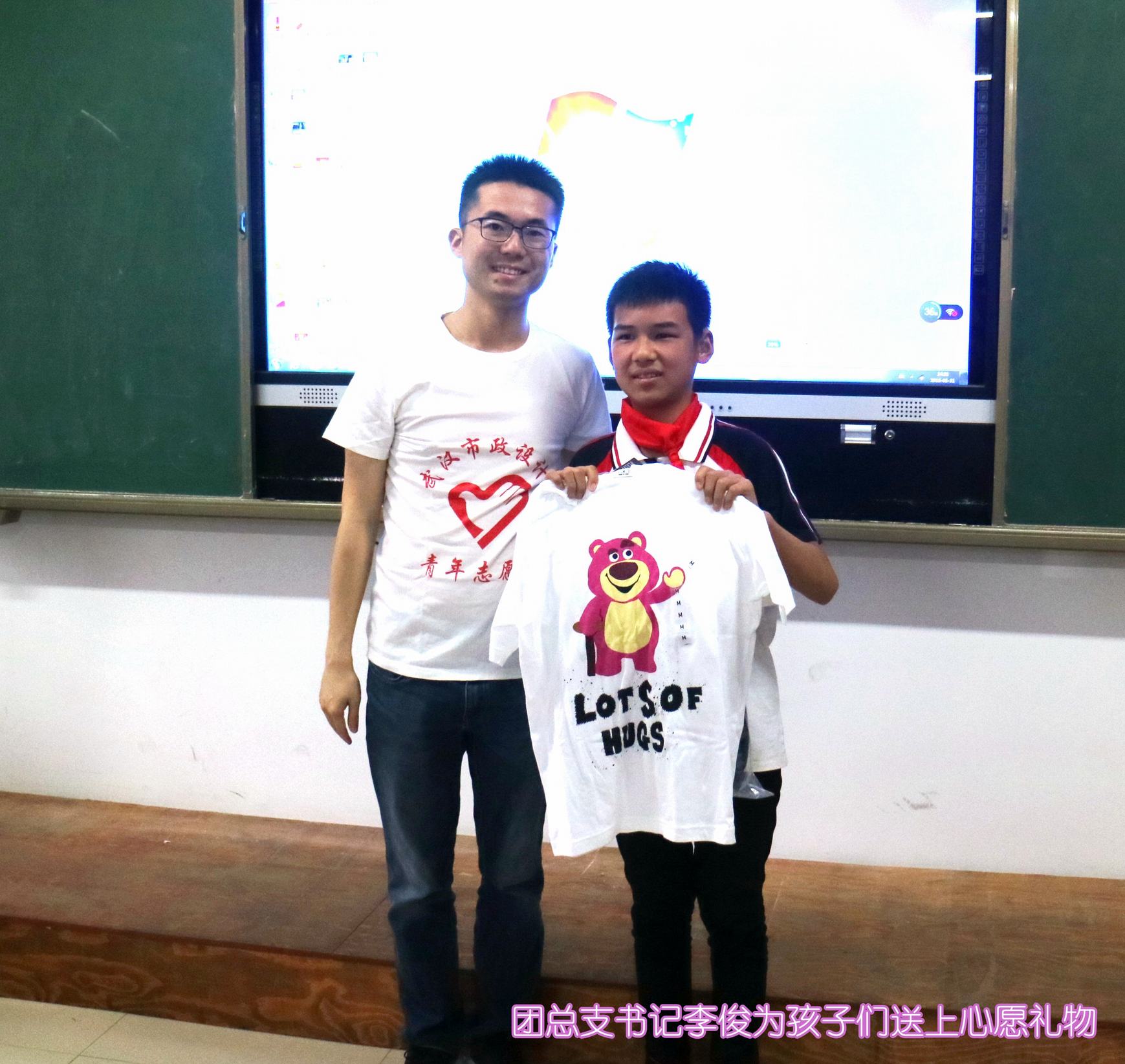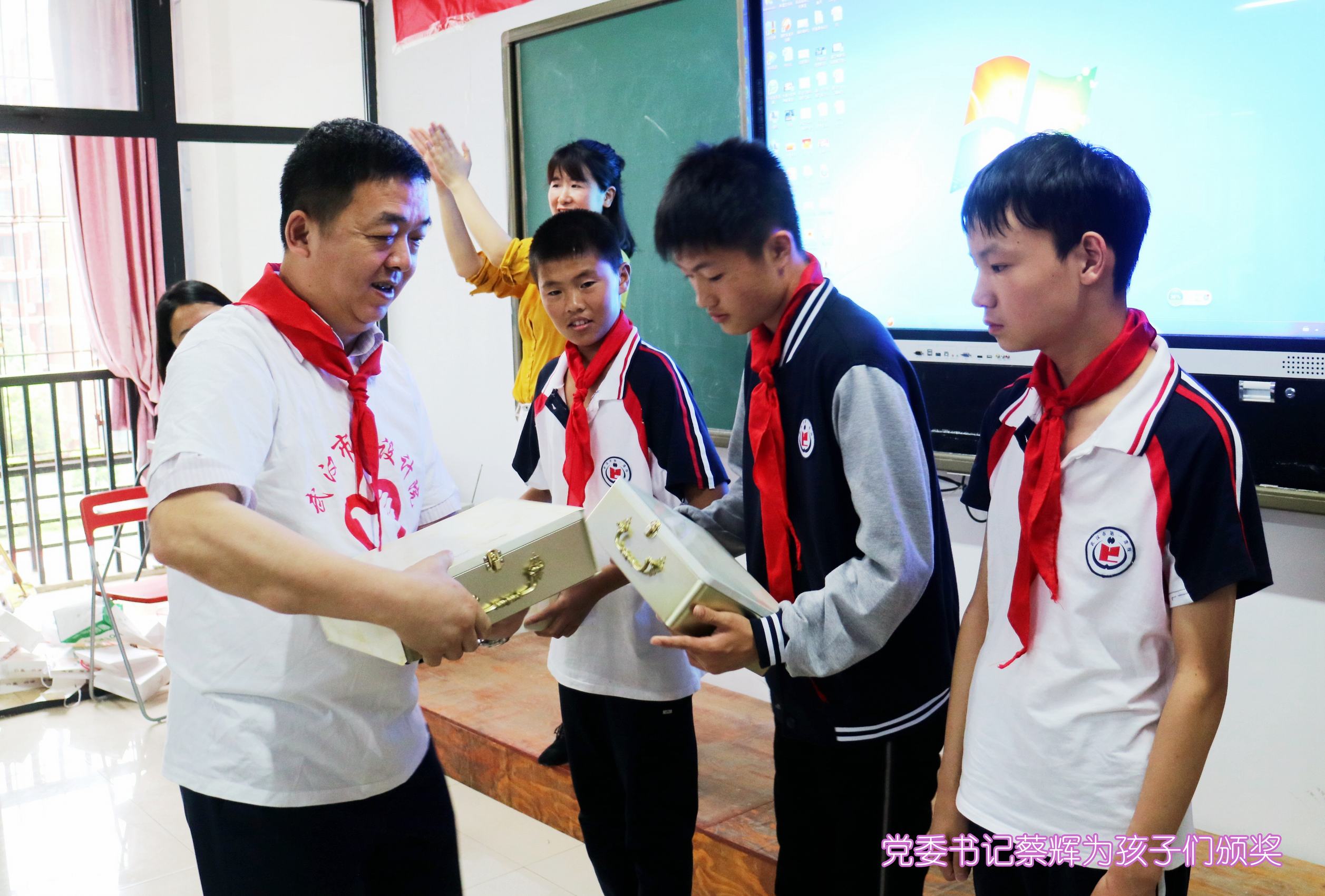 ??? 教室里,志愿者們與孩子們并排而坐,時(shí)而低聲或通過(guò)手勢(shì)進(jìn)行交流。公司黨委書(shū)記蔡輝、團(tuán)總支書(shū)記李俊和學(xué)校黨支部書(shū)記舒敏熠、副校長(zhǎng)吳云鵬、楊小玲、團(tuán)委書(shū)記楊茜等步入會(huì)場(chǎng)時(shí),全場(chǎng)響起熱烈掌聲,學(xué)生代表為他們系上紅領(lǐng)巾,并用少先隊(duì)隊(duì)禮向他們致敬,領(lǐng)導(dǎo)們則豎起大拇指對(duì)他們表示感謝。